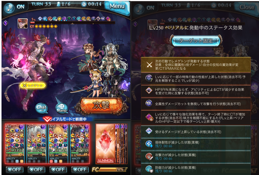 バフが剥がれたら再開するのですが、ベリアルの50以降のCT特殊アナゲンネーシスは強制全滅技です。