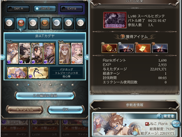 バレモ二カとサテュロスの奥義ループ編成では常時デバフディスガ無効になるので、速度を気にしなければ古戦場の高レベルで活躍しそうです。