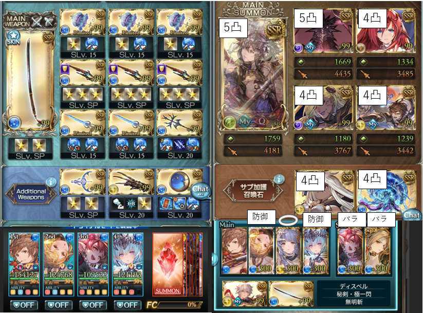 3アビが弱体アビなのにバフついてきます。サポアビの常時ディスガが古戦場でも超便利。